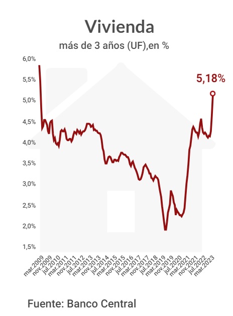Asimismo, la semana pasada, BancoEstado lanzó una oferta hipotecaria en medio de este escenario de alza de tasas. En concreto, la oferta es para viviendas nuevas o usadas, con o sin subsidio, en donde la tasa es de UF +4,70% anual a 20 años, UF +4,75% a 25 años y de UF +4,80% a 30 años. Por otra parte, para viviendas nuevas, de ciertos proyectos de inmobiliarias en alianza con BancoEstado, se contempla una tasa de interés de UF +4,21% anual a 20 años plazo, de UF +4,35% a 25 años y de UF +4,45% a 30 años. Estas inmobiliarias son Leben, Pocuro, Socovesa, Imagina, Terracorp, GPR, Koyam y PY Inmobiliaria.